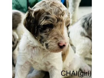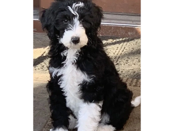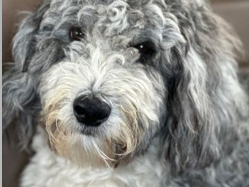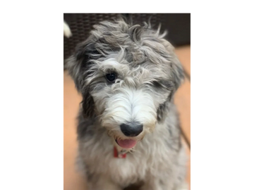 SIMILIAR TO THE GREY SHEEPADOODLE BUT THE TONES ARE LIGHTER. NORMALLY COME IN BI-COLOR OR TUXEDO PATTERNS AND CAN HAVE WHITE PATCHES ON THEIR BODY.