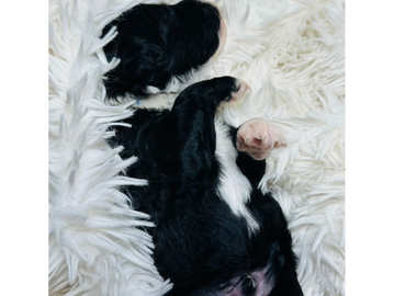 ONE OF THE MOST COMMON COAT PATTERNS TAKING AFTER THE OES. CAN COME WHITE WITH BLACK PATCHES OR BLACK WITH WHITE PATCHES. VARIATIONS INCLUDE THE PARTI AND THE TUXEDO