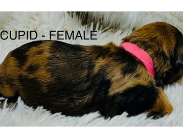 A RARE COMBO WHERE THE PUP HAS TIGER STRIP PATTERNS IN SHADES OF BROWN, BLACK OR GREY.