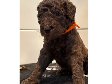 COMING FROM BOTH THE POODLE AND THE OES HERITAGE BROWNS CAN BE COMMON. FROM LIGHT TO DARK CHOCOLATE BASE AND CAN HAVE PATCHES OF OTHER SHADES OF CREAM, BROWN OR EVEN WHITE AND BLACK. IF BROWN IS THE GOAL THEN A PARENT SHOULD HAVE RED OR APRICOT IN THEIR COATS. VERY RARE IS A SOLID COLOR BROWN.